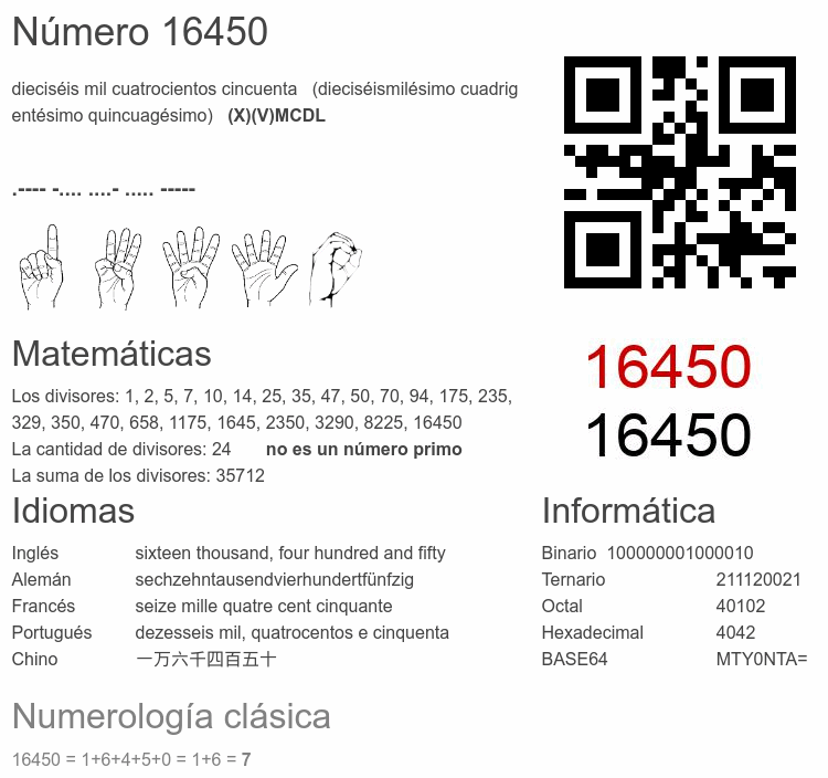 Curiosidades del número 16450