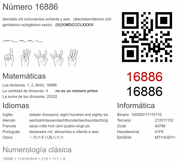 Curiosidades del número 16886