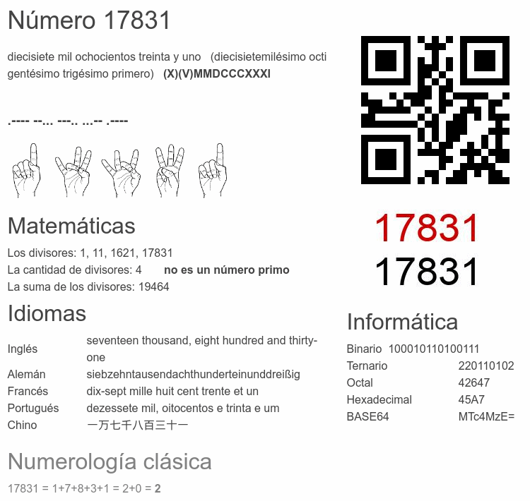 Curiosidades del número 17831