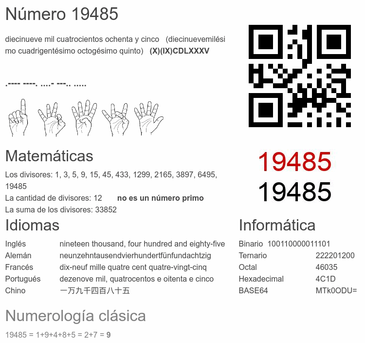 Curiosidades del número 19485