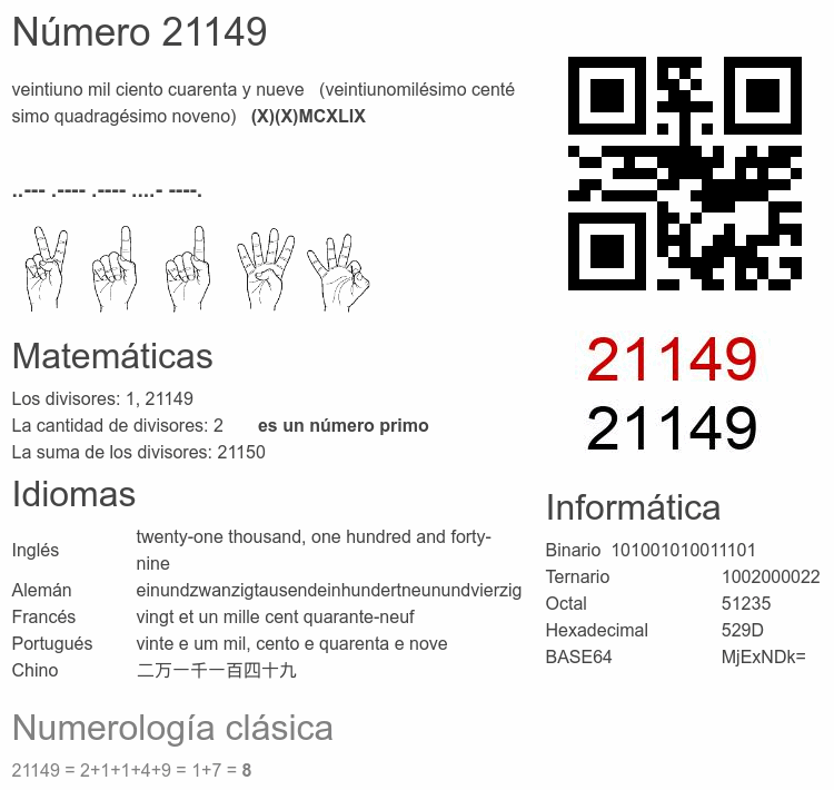 Curiosidades del número 21149