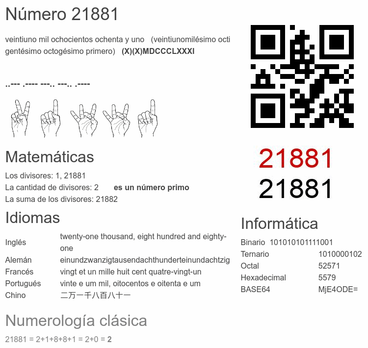 Curiosidades del número 21881