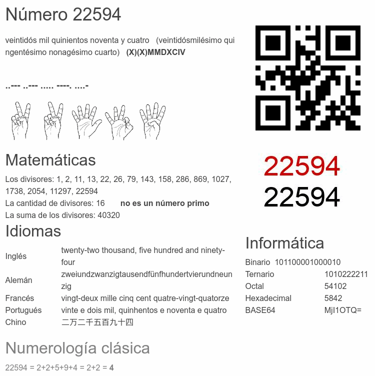 Curiosidades del número 22594