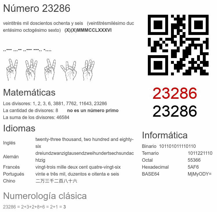 Curiosidades del número 23286