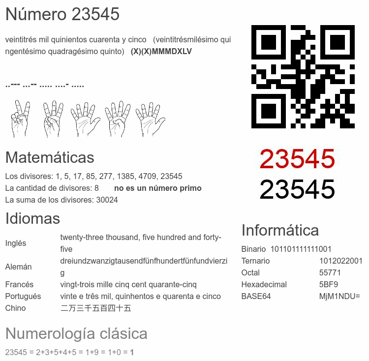 El número 23545 en Informática