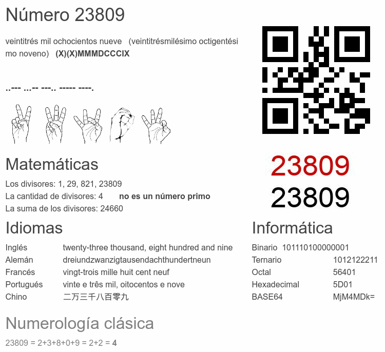 Curiosidades del número 23809