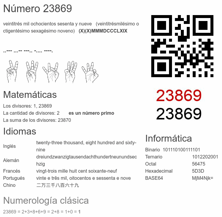 Curiosidades del número 23869