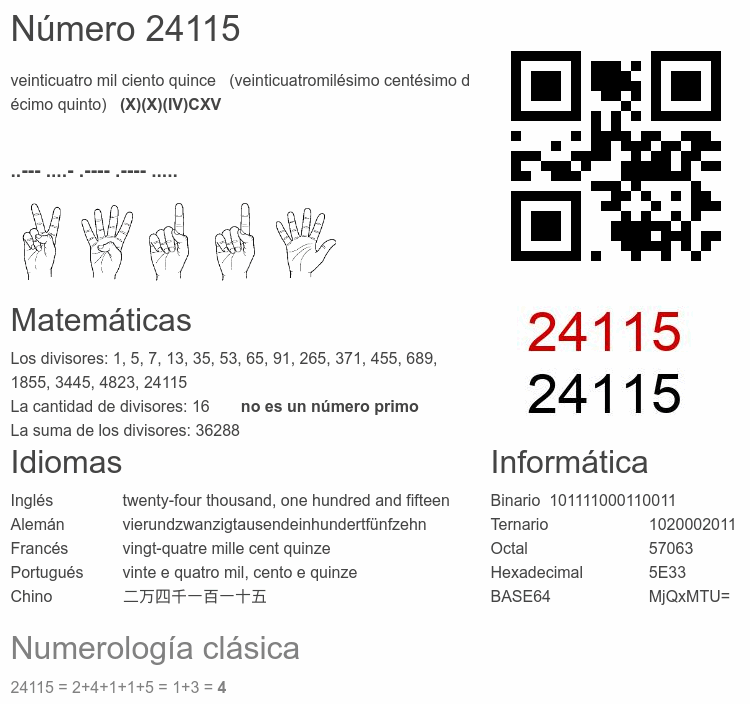 Si conoce algo interesante sobre el número 24115 o cualquier número natural (entero positivo), por favor escríbanos.Número 24 115 en otras unidades