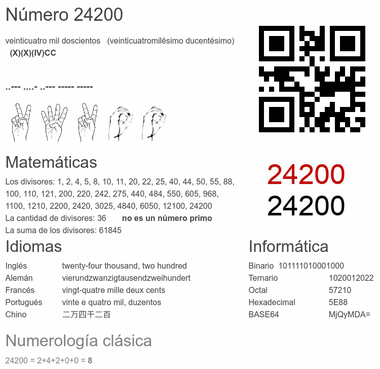 Si conoce algo interesante sobre el número 24200 que no ha encontrado en esta página, no dude en escríbanos aqui.