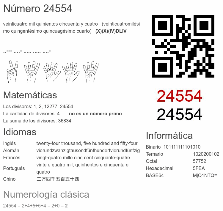 Si conoce algo interesante sobre el número 24554 o cualquier número natural (entero positivo), por favor escríbanos.Número 24 554 en otras unidades