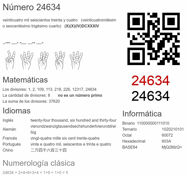 Curiosidades del número 24634