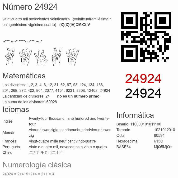 Curiosidades del número 24924