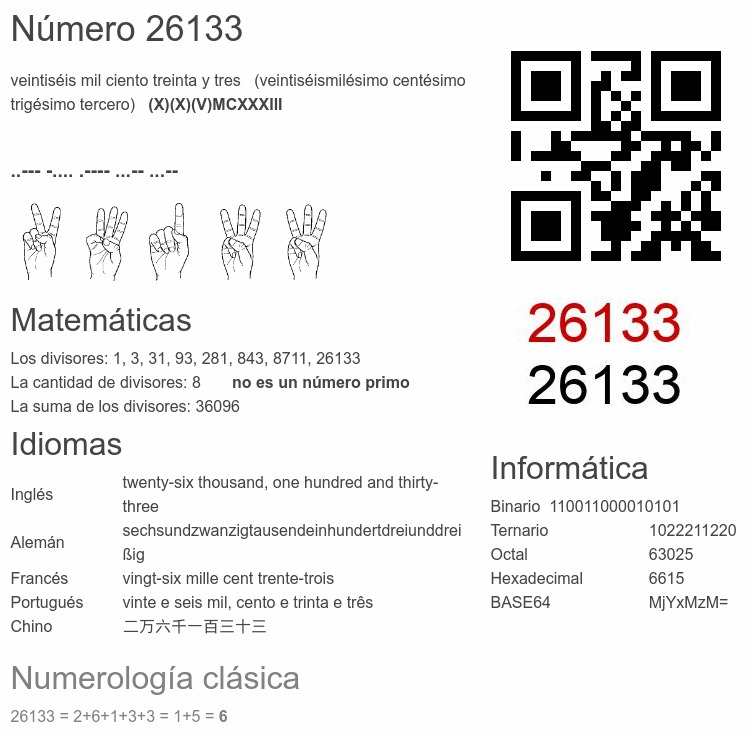 Curiosidades del número 26133
