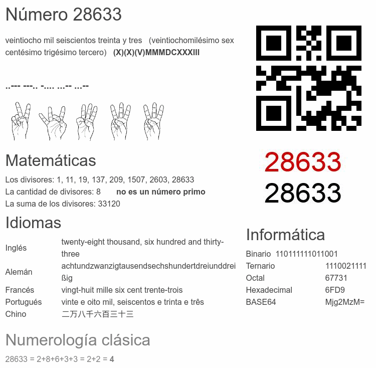 Curiosidades del número 28633