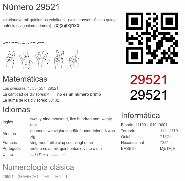 Curiosidades del número 29521