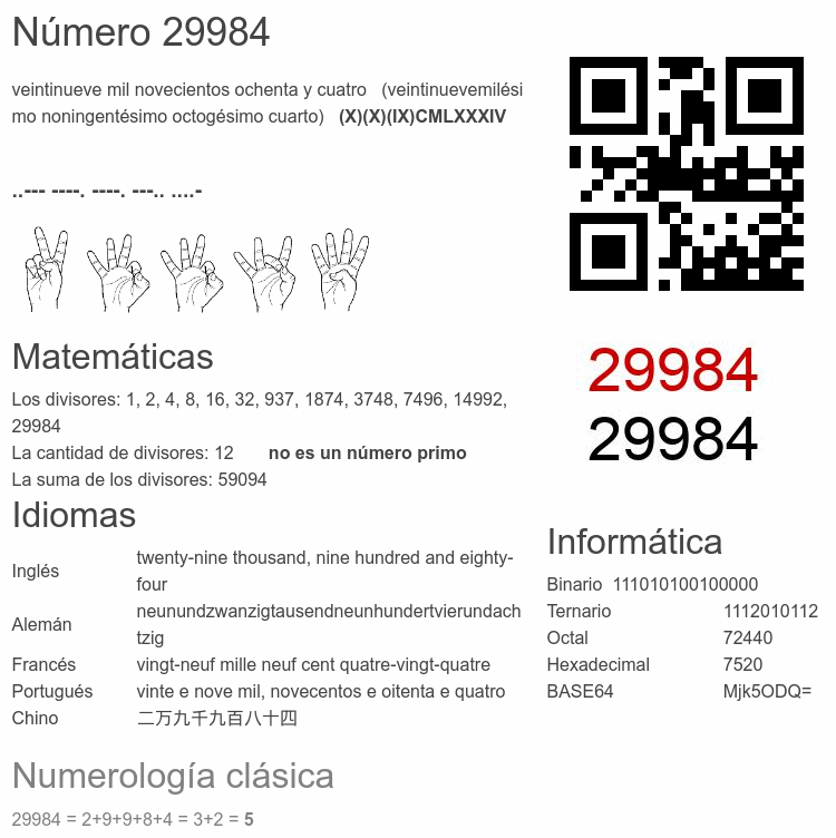 Curiosidades del número 29984