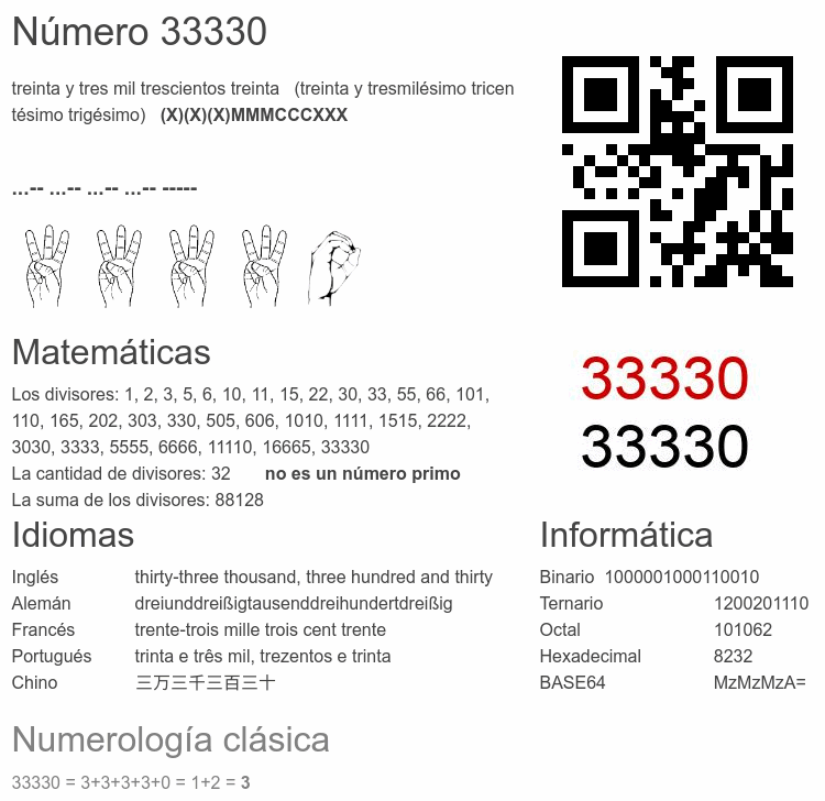 Curiosidades del número 33330
