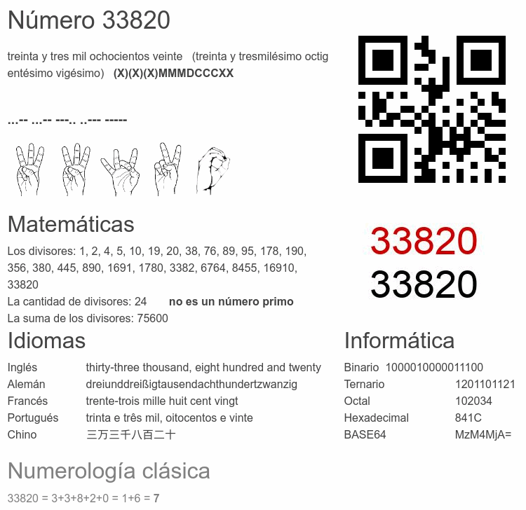 Si conoce algo interesante sobre el número 33820 o cualquier número natural (entero positivo), por favor escríbanos.Número 33 820 en otras unidades