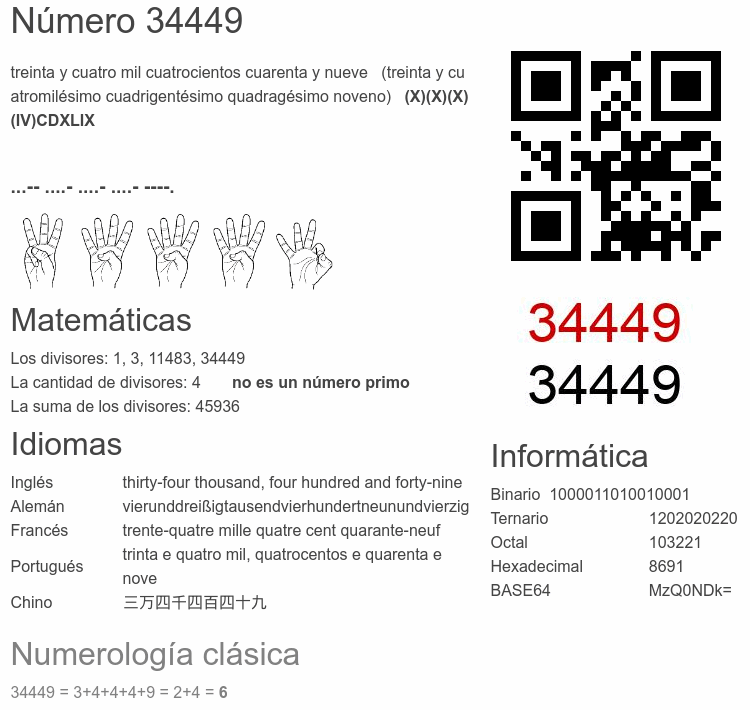 Si conoce algo interesante sobre el número 34449 o cualquier número natural (entero positivo), por favor escríbanos.Número 34 449 en otras unidades