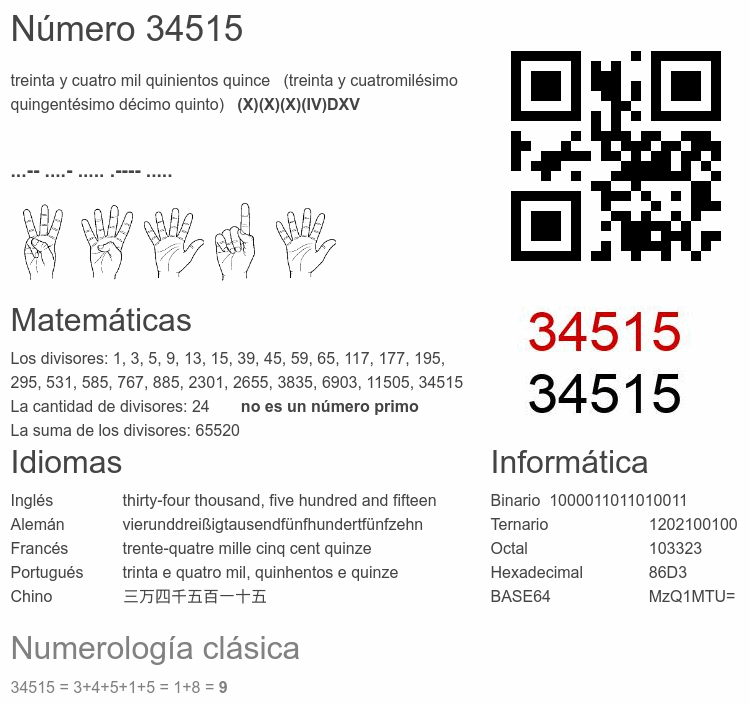 Si conoce algo interesante sobre el número 34515 o cualquier número natural (entero positivo), por favor escríbanos.Número 34 515 en otras unidades