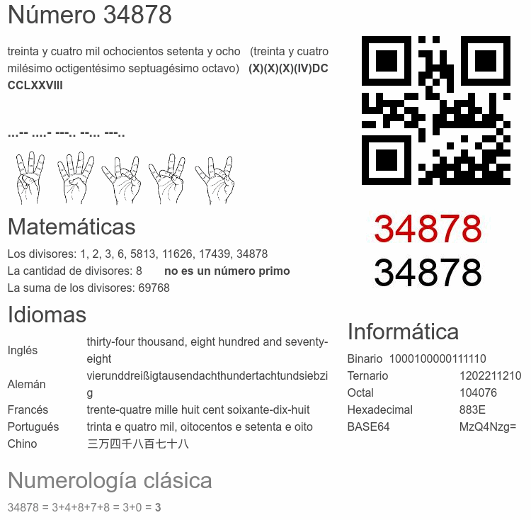 Curiosidades del número 34878