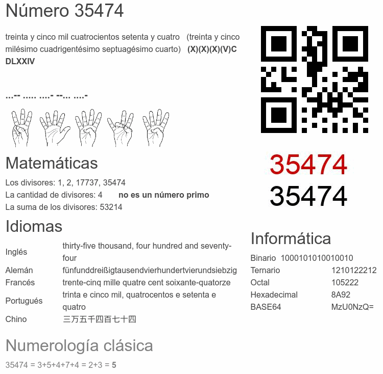 Si conoce algo interesante sobre el número 35474 o cualquier número natural (entero positivo), por favor escríbanos.Número 35 474 en otras unidades