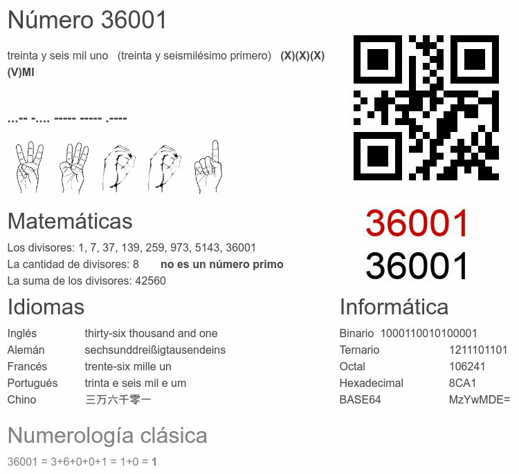 Curiosidades del número 36001