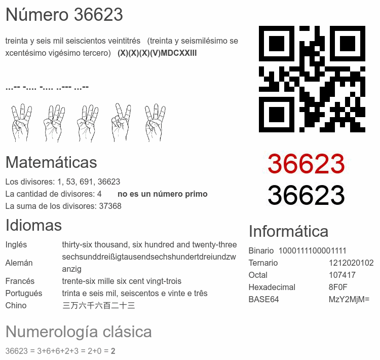 Si conoce algo interesante sobre el número 36623 o cualquier número natural (entero positivo), por favor escríbanos.Número 36 623 en otras unidades
