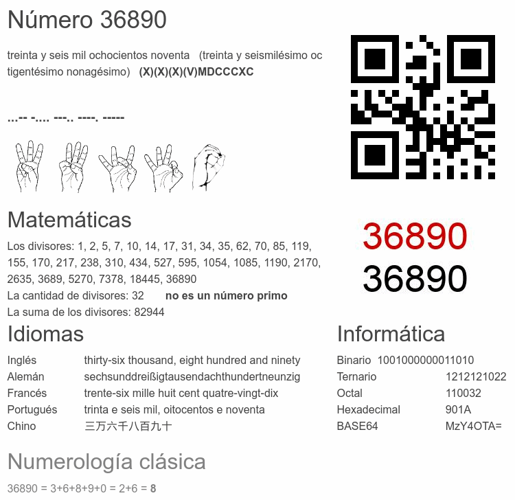 Si conoce algo interesante sobre el número 36890 o cualquier número natural (entero positivo), por favor escríbanos.Número 36 890 en otras unidades