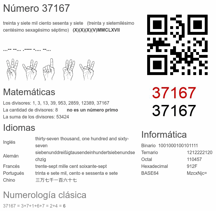 Si conoce algo interesante sobre el número 37167 que no ha encontrado en esta página, no dude en escríbanos aqui.