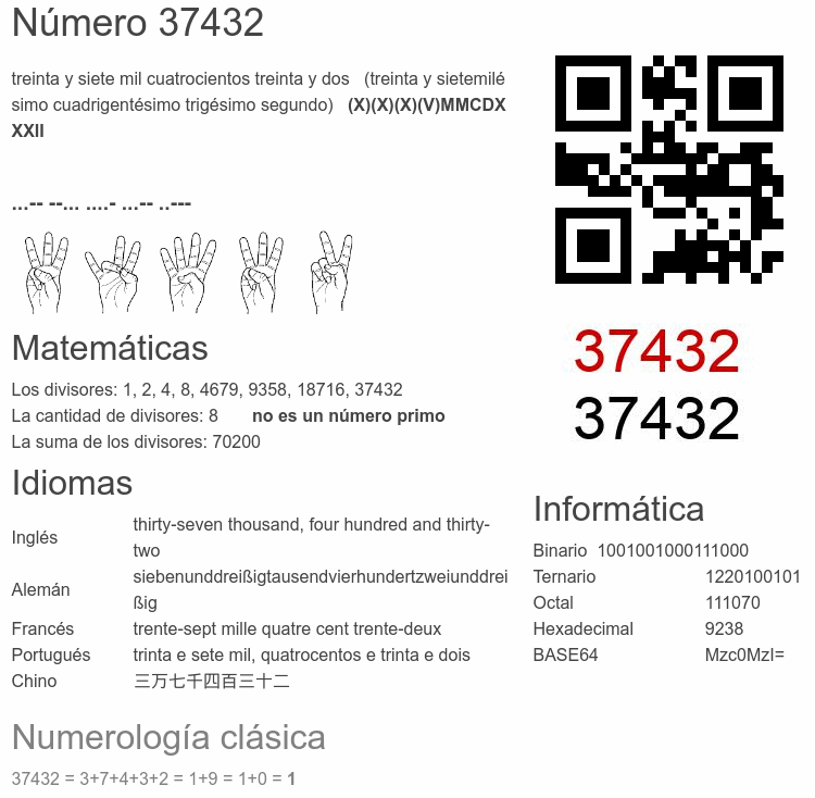 Curiosidades del número 37432