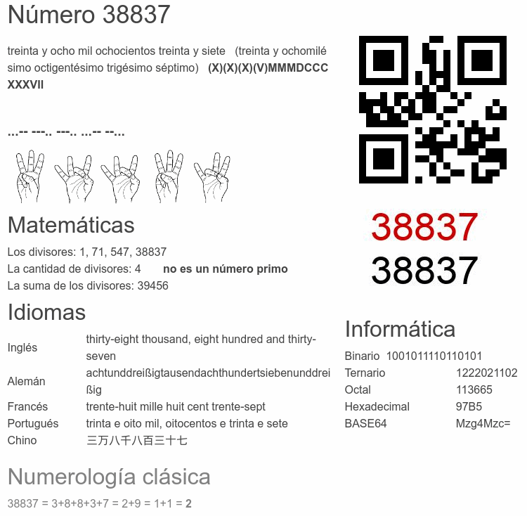 Curiosidades del número 38837