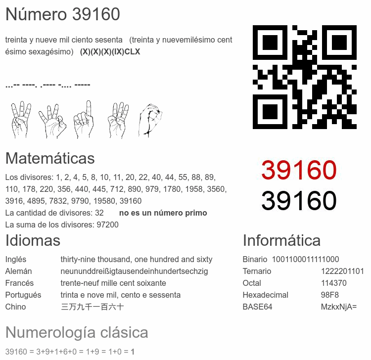 Curiosidades del número 39160