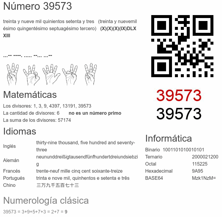 Curiosidades del número 39573