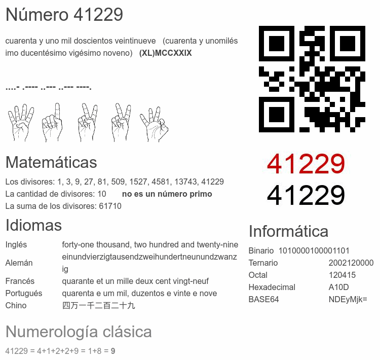 Curiosidades del número 41229