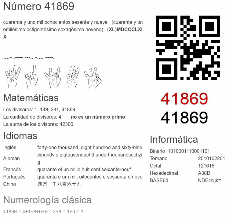 Curiosidades del número 41869