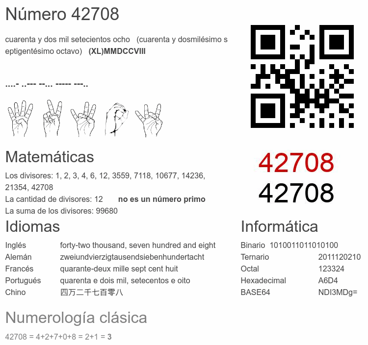 Curiosidades del número 42708