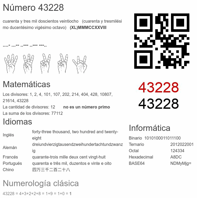 Curiosidades del número 43228