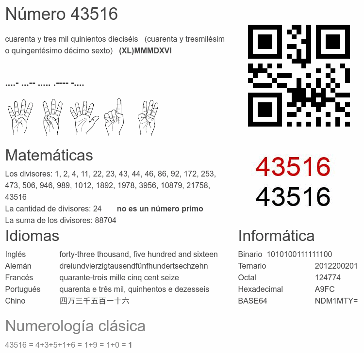 Curiosidades del número 43516
