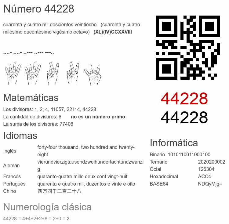 Curiosidades del número 44228