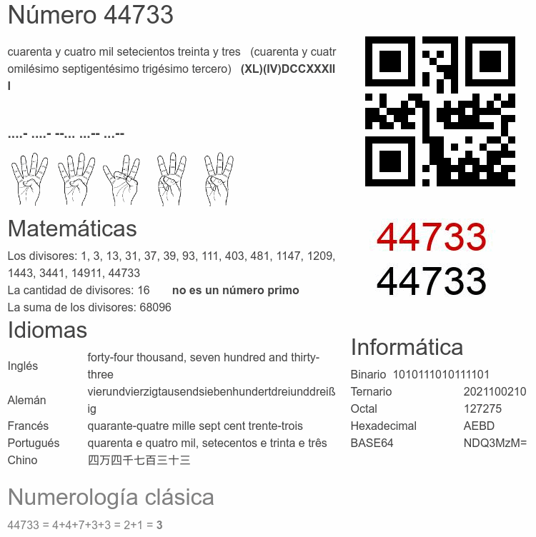 Si conoce algo interesante sobre el número 44733 que no ha encontrado en esta página, no dude en escríbanos aqui.