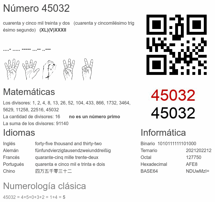 Curiosidades del número 45032