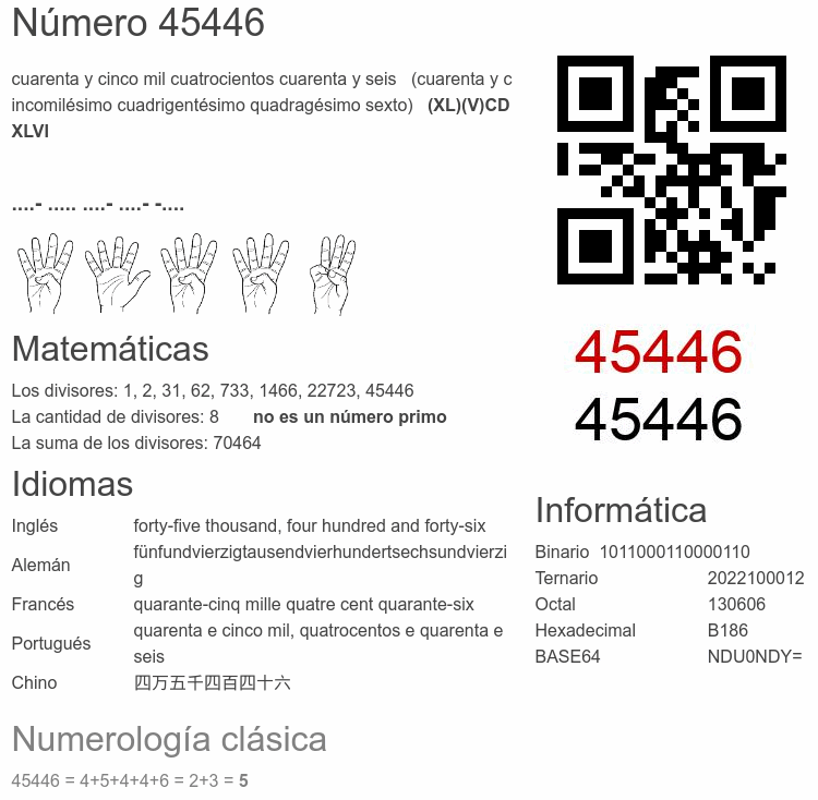 Curiosidades del número 45446