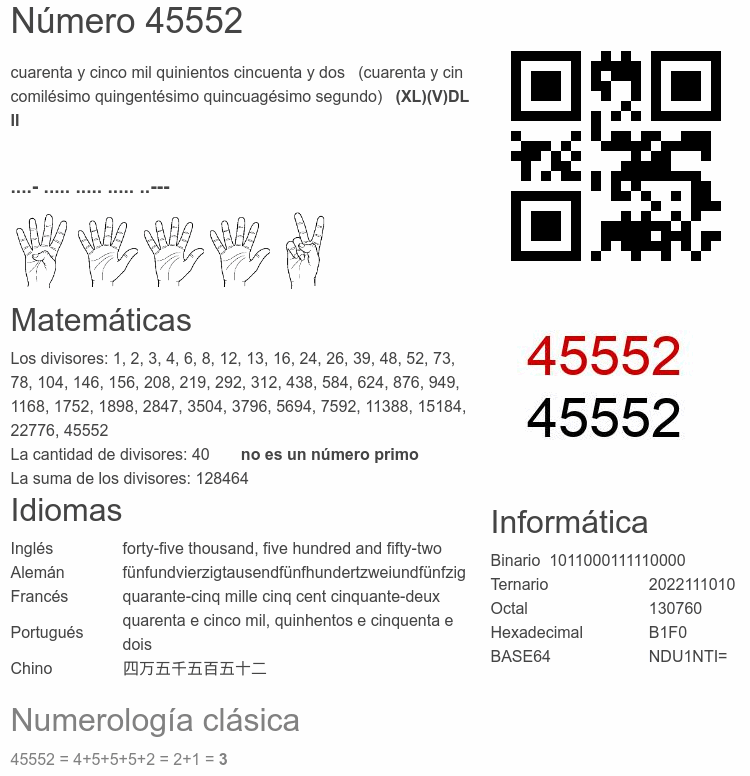 El número 45552 en Informática