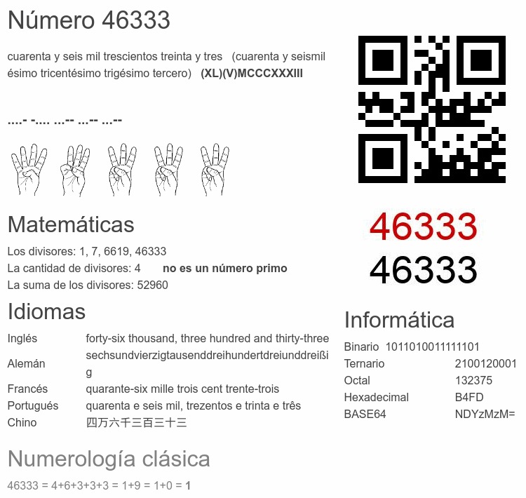 Curiosidades del número 46333