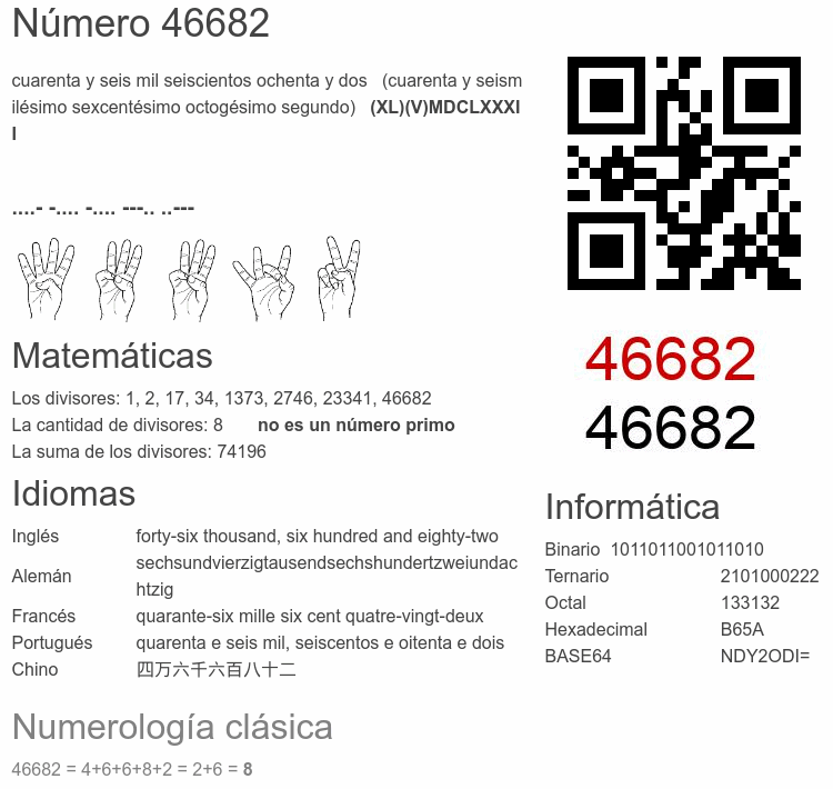 Curiosidades del número 46682
