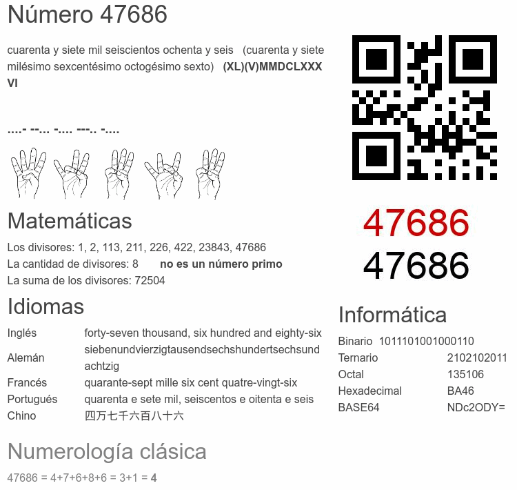 Curiosidades del número 47686