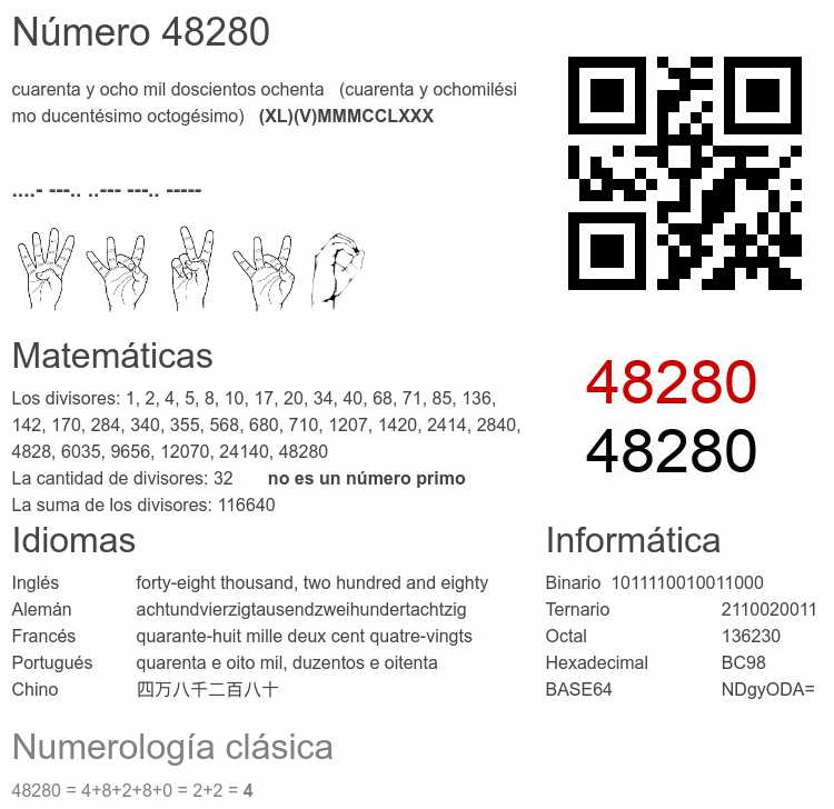 Curiosidades del número 48280