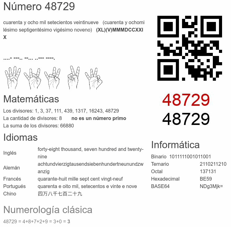 Curiosidades del número 48729