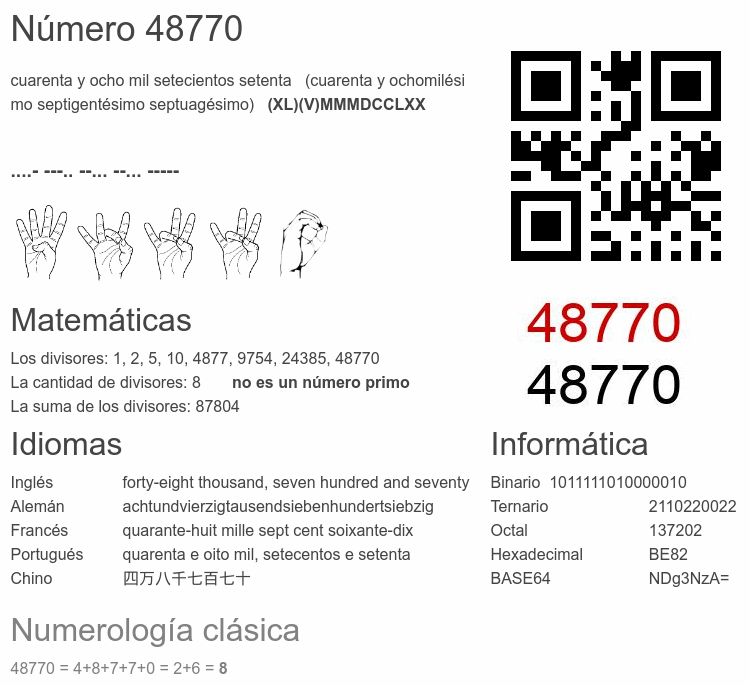 Si conoce algo interesante sobre el número 48770 o cualquier número natural (entero positivo), por favor escríbanos.Número 48 770 en otras unidades